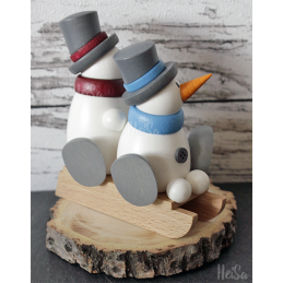 Schneemann Fritz und Schneemann Otto auf Schlitten aus der Manufaktur Hobler in Grünhainichen.