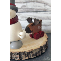 Schneemann Otto mit Elch aus der Manufaktur Hobler in Grünhainichen.