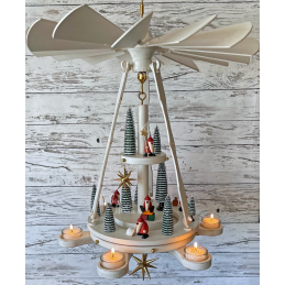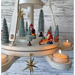 Mit unserer handgefertigten „Kleinen Schönheider Hängepyramide - im Shabby Look“ bringen Sie nicht nur Weihnachtsglanz in Ihr Heim, sondern erhalten ein sehr modernes sowie hochwertiges Produkt der Erzgebirgischen Volkskunst. Der Drehring mit seinen Verbindungselementen wird wie das Flügelrad von 6 feststehenden Teelichtern angetrieben.